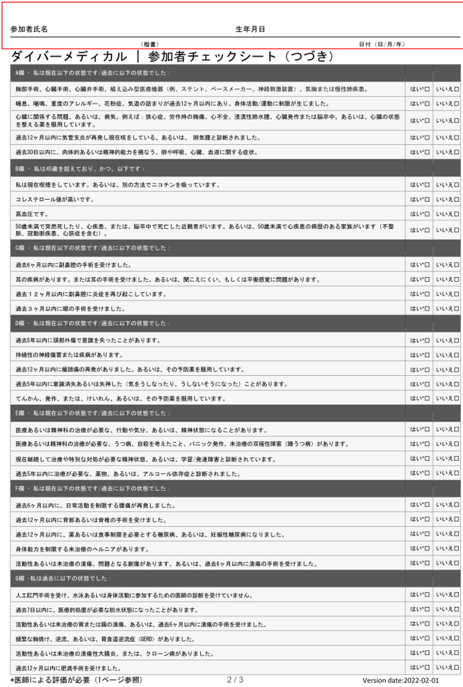 ■ダイバーメディカル/参加者チェックシート
