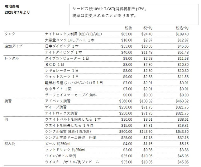 ■オプション(追加)ダイブ ※ナイトダイビングは乗船料に含まれておりません